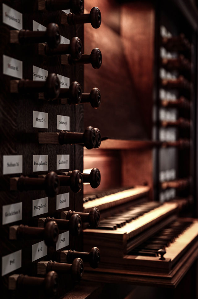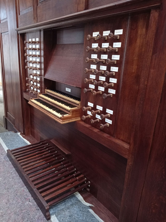 Reconstruction d'un orgue d'esthétique allemande en réutilisant des éléments du buffet existant.