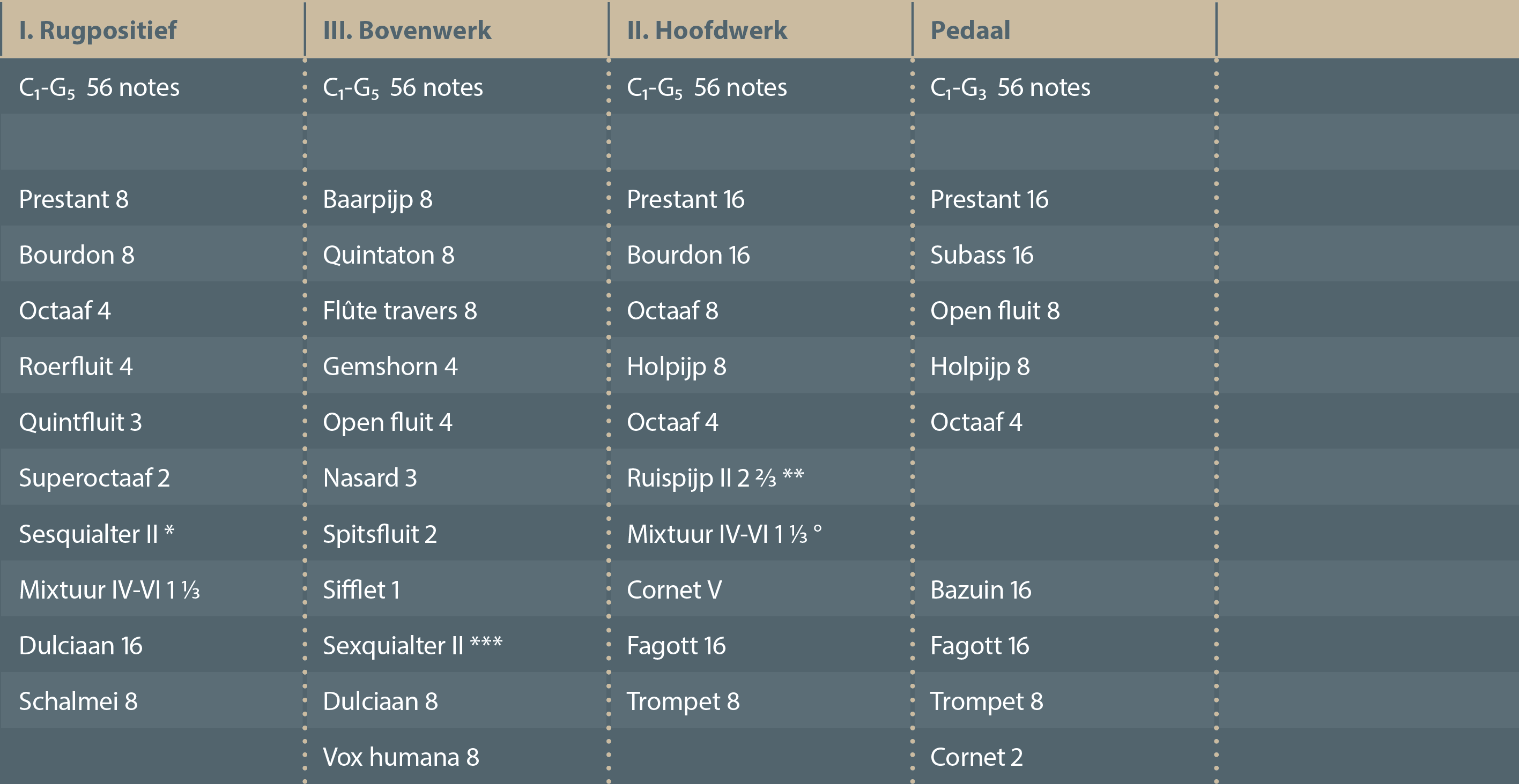 Pour faciliter la lecture, le Bovenwerk et le Hoofdwerk ont été intervertis.