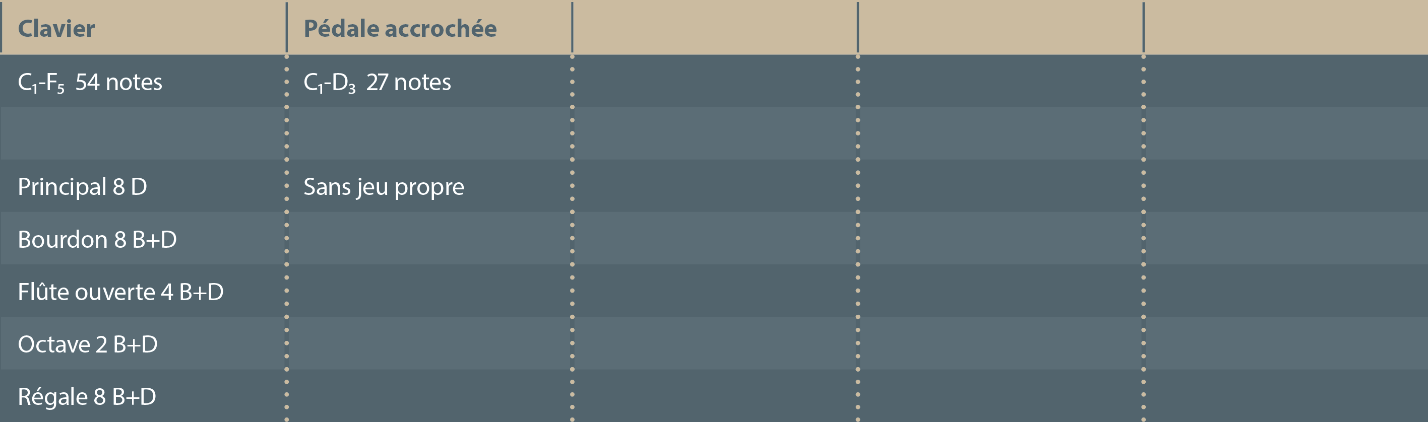 Clavier transpositeur à quatre positions; tempérament modifiable.