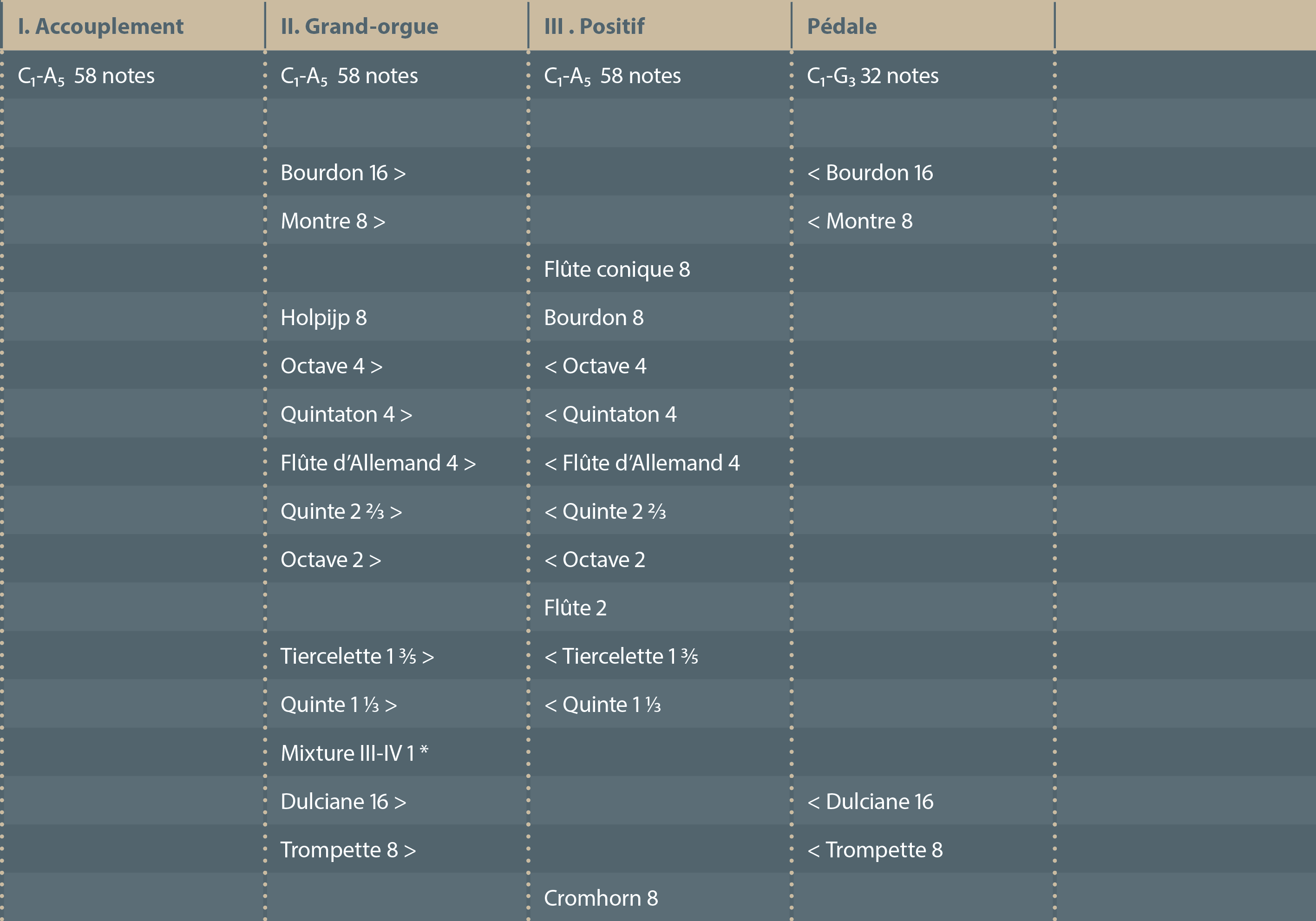 Pour faciliter la lecture, le Grand-orgue et le clavier d’Accouplement ont été intervertis.
