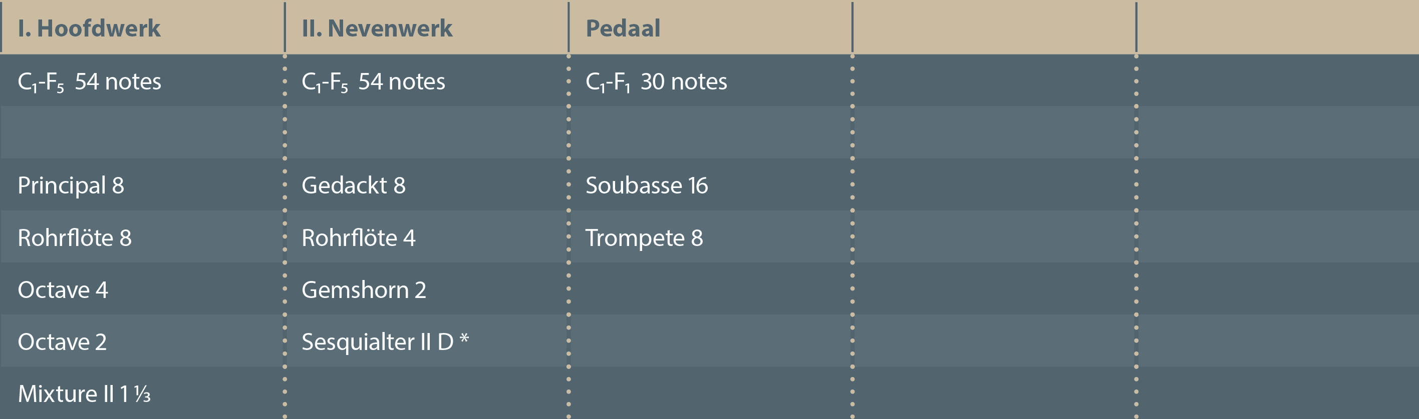 Orgue construit à l’origine pour la chapelle du quartier Hazegras à Ostende : I/P/6 (Hoofdwerk et Soubasse de la pédale), inauguré le 23 et le 24 IV 2005 par Peter Ledaine et Jan Van de Moortel. Complété en 2009 et déménagé ici en 2010.