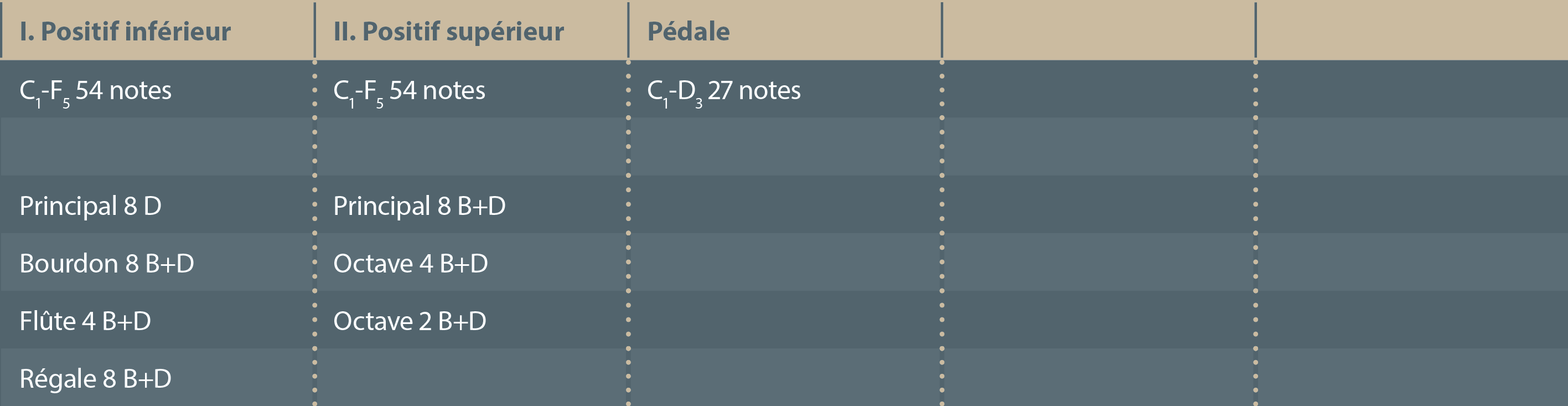 Orgue coffre à deux parties, jouables indépendamment l'une de l'autre. II/p/7 + 1/2